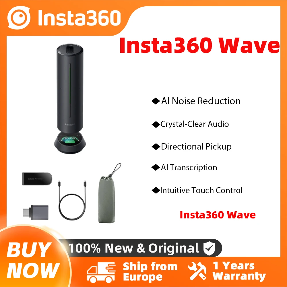 Microfono e altoparlante omnidirezionale Insta360 Wave AI 360 ° Portata di raccolta di 5 metri Riduzione intelligente del rumore Wireless Bluetooth Live