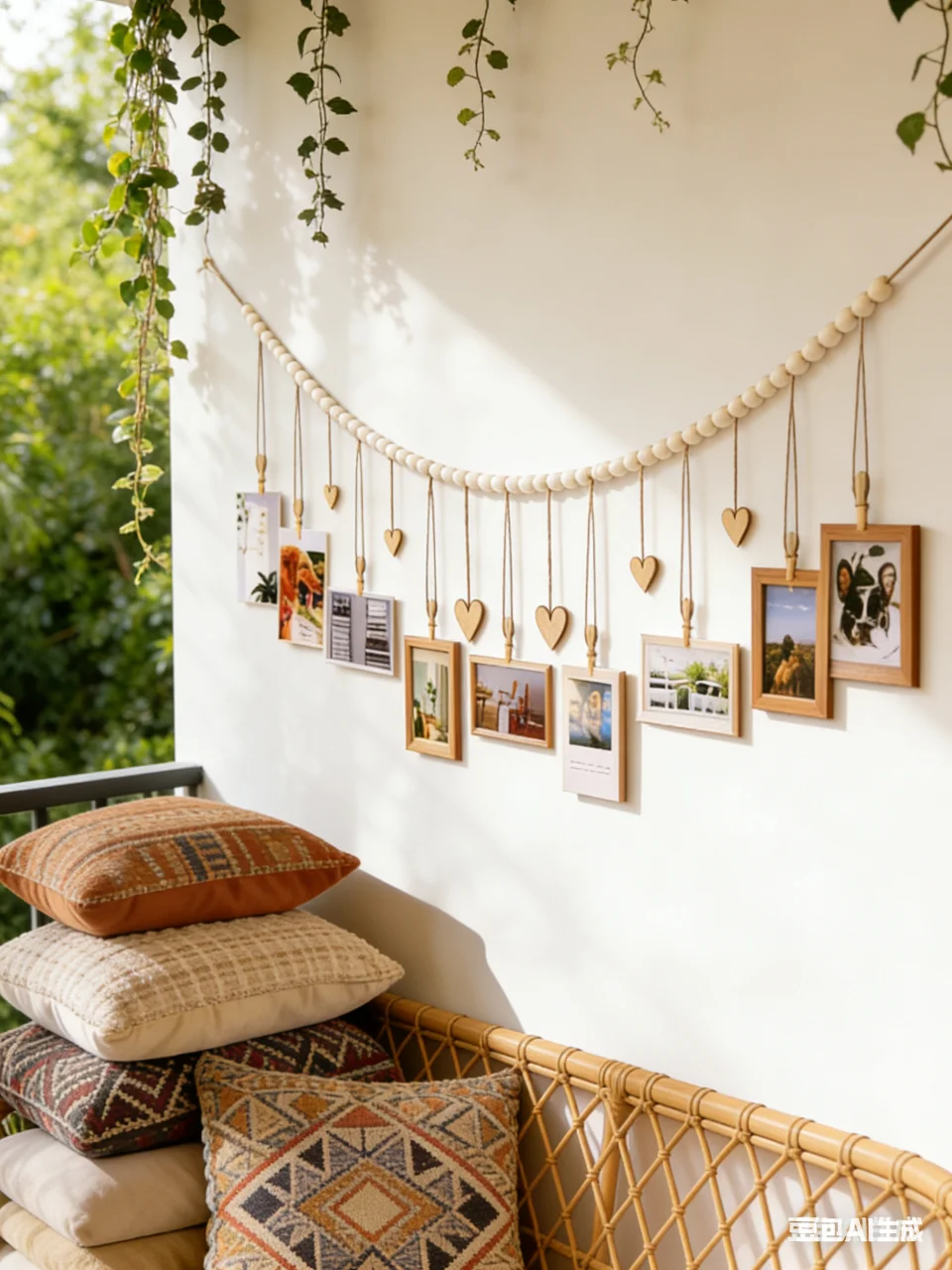 Espositore per Foto da Appendere, Decorazione Murale Boho, Cornice Collage, Porta Biglietti di Natale, Cuori in Legno per Casa, Camera da Letto, Ufficio