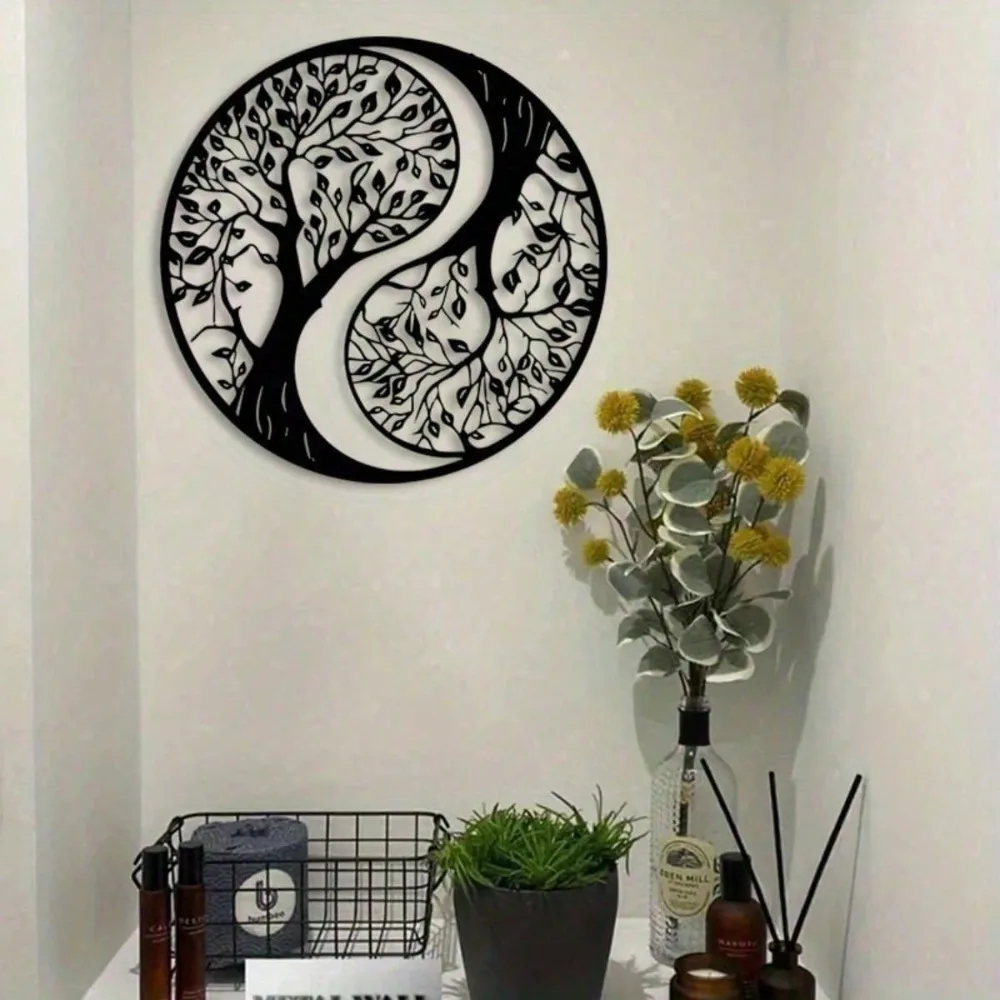 Decorazione da parete in metallo, albero della vita Yin Yang, arte in metallo rotonda per soggiorno, regalo di inaugurazione della casa