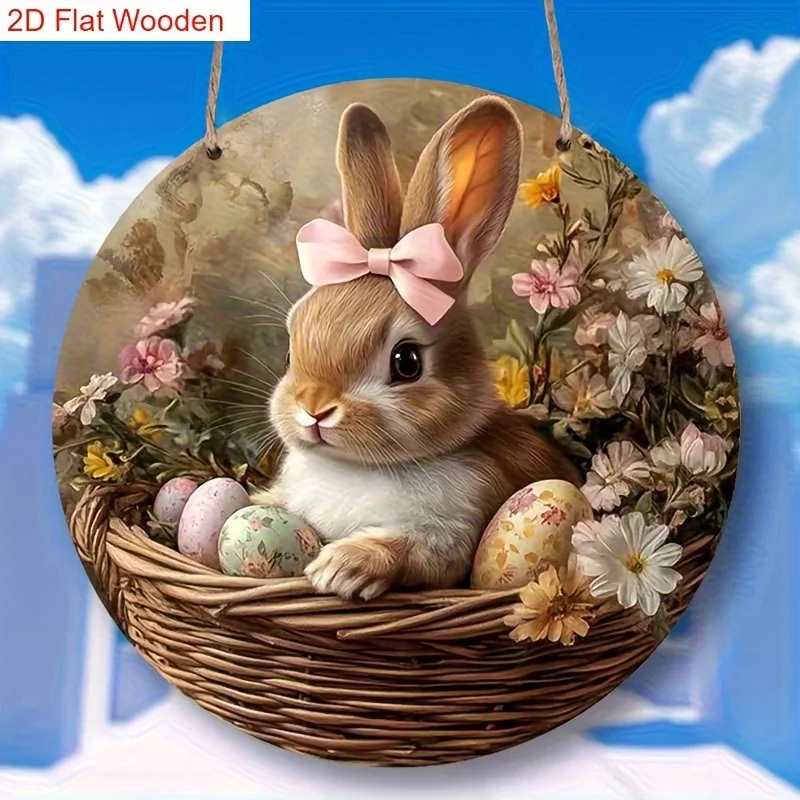 Decorazione Pasquale in Legno a Forma di Coniglio, Ornamento Rotondo Piatto 2D per Decorazione Murale Primaverile Casa e Ufficio, San Valentino e San Patrizio