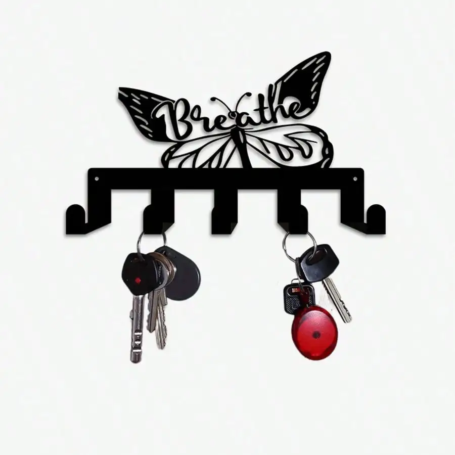 Portachiavi da Parete in Metallo Nero Anticato a Forma di Farfalla, 5 Ganci in Ferro Resistente, Senza Foratura, per Ingresso, Corridoio, Camera da Letto, Regalo di Inaugurazione Casa