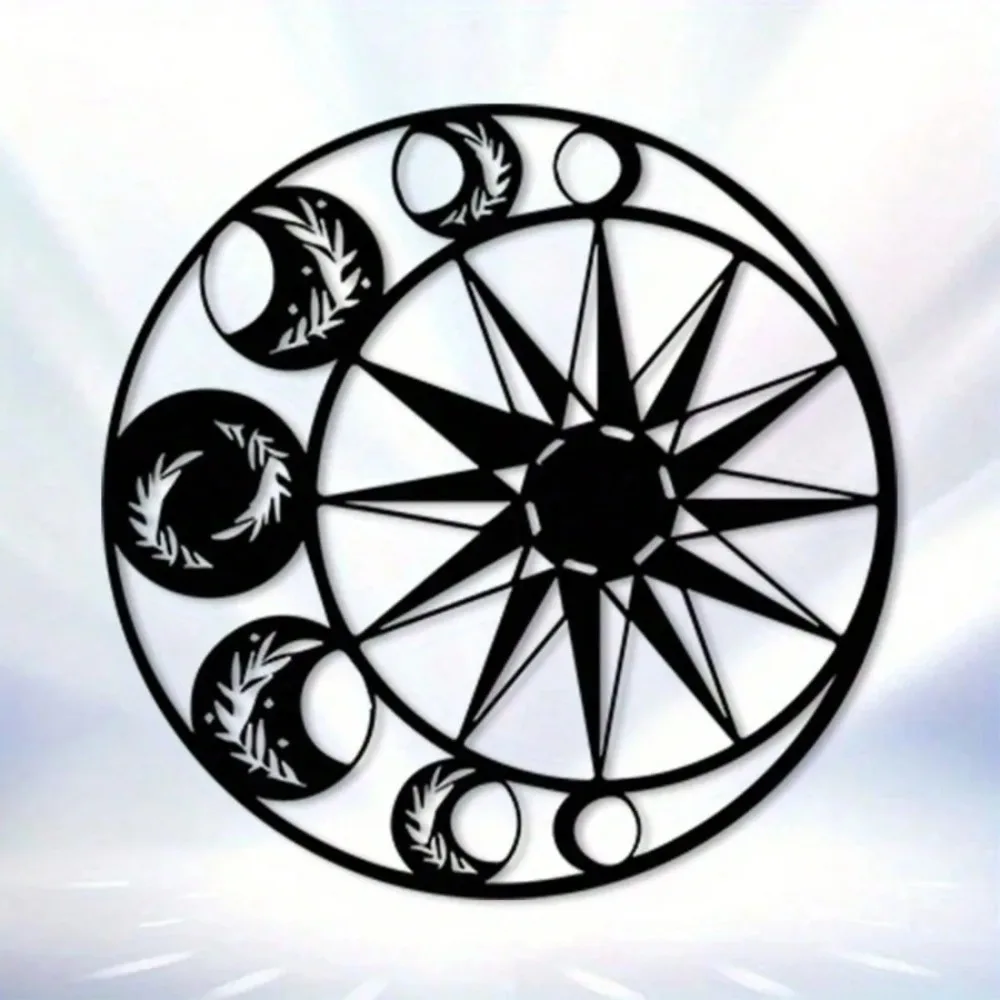 Decorazione da parete vintage con fasi lunari - Insegna in metallo con bussola in ferro anticato per camera da letto, giardino, patio