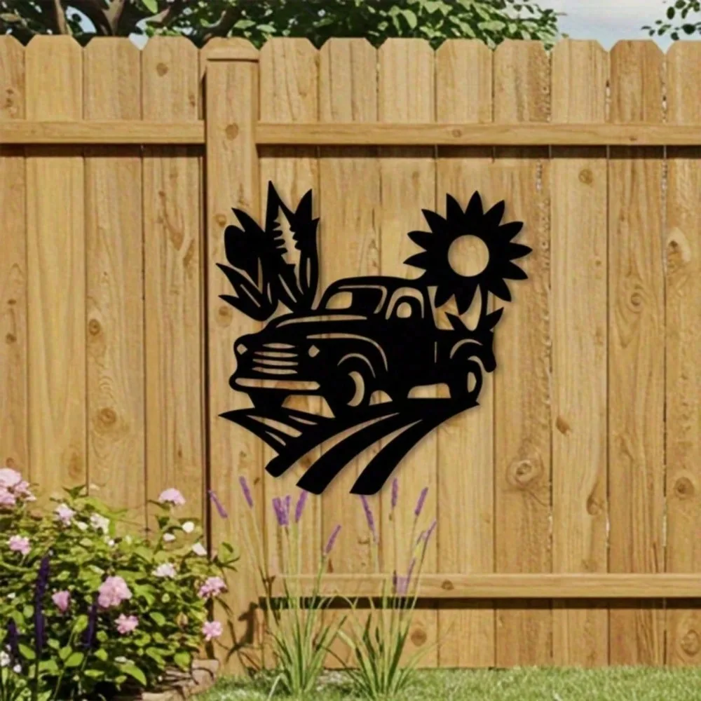 Decorazione da parete in metallo vintage - Decorazione rustica con girasole e camion in ferro, design astratto bianco e nero per interni ed esterni