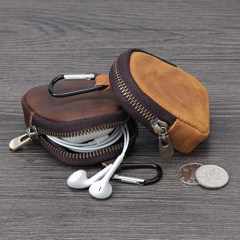 Custodia Portatile per Auricolari in Pelle PU Stile Retrò, Mini Portamonete con Moschettone, Piccolo Portachiavi e Custodia per Auricolari
