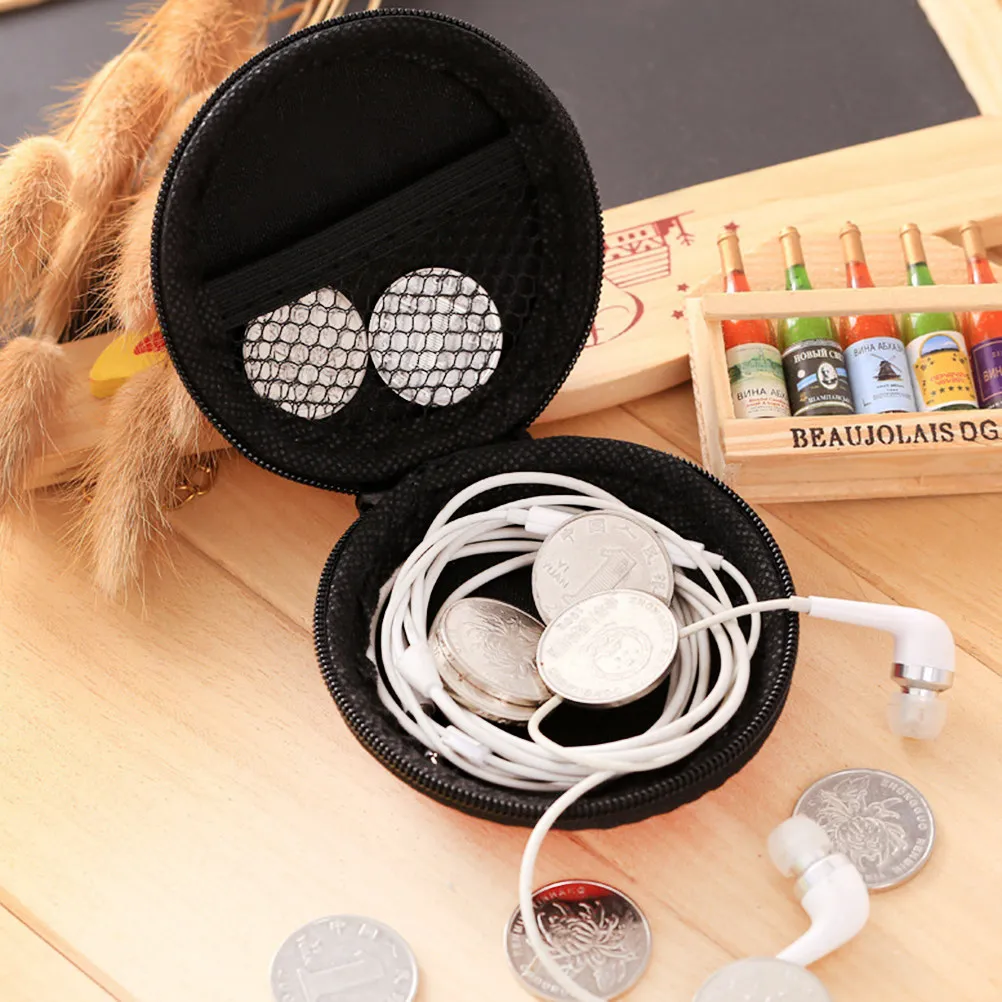 Portamonete compatto a forma di palla con guscio rigido e chiusura a cerniera per la protezione di auricolari, cavi USB, schede di memoria e chiavette USB