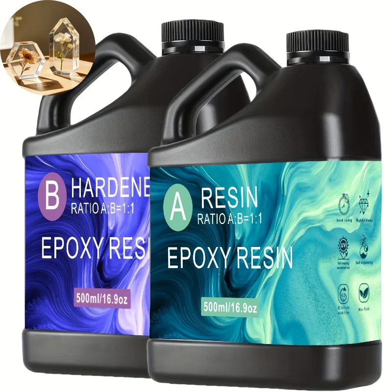 Kit in resina epossidica trasparente 16,9 once Resina per colata a basso odore con cura rapida senza bolle per gioielli artistici fai da te Artigianato da tavolo in legno e stampi