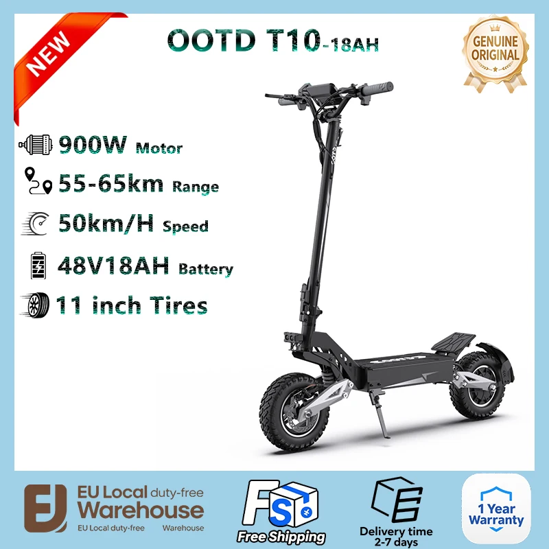 Nuovo modello OOTD T10 900W Motore 48V18AH Scooter elettrico Velocità massima 50 km/h Gamma massima 60 km Display a LED Pendolarismo Viaggio Piega E-scooter