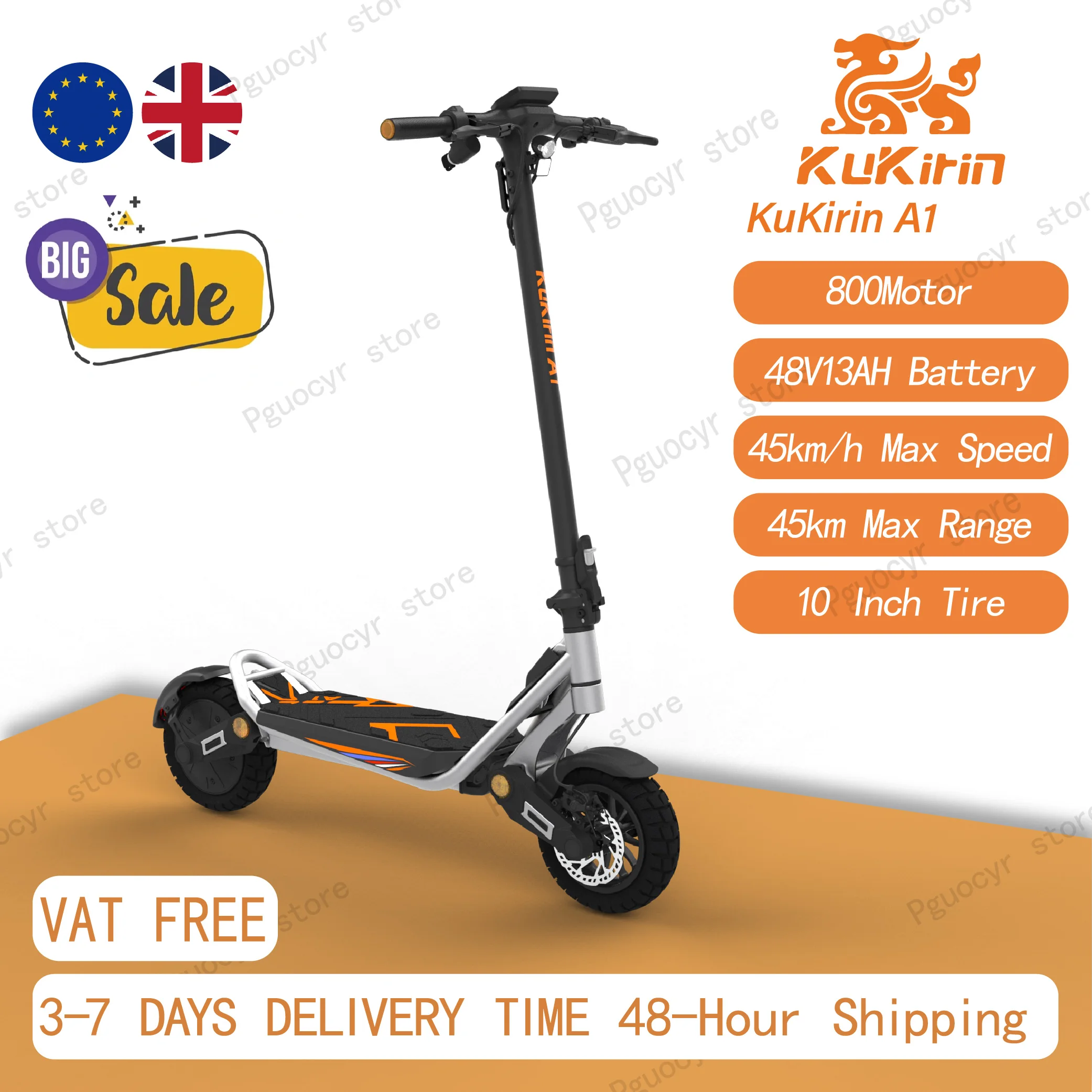 Monopattino Elettrico Kukirin A1, Motore 800W, Batteria 48V13Ah, Pneumatici da 10 Pollici, Velocità Massima 45km/h, Autonomia 45km, Freni a Disco Anteriori e Posteriori