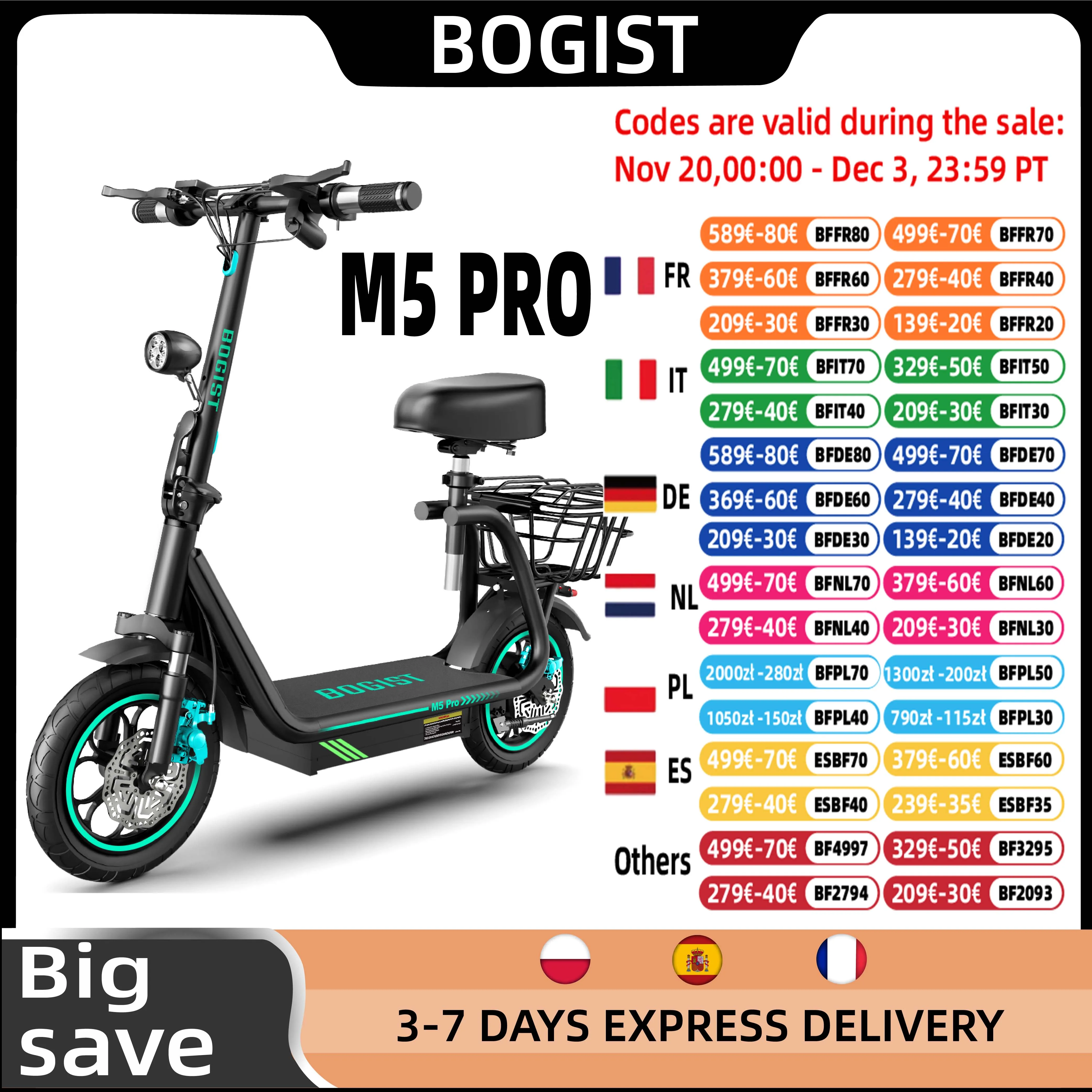 Bogist M5 Pro Scooter elettrico per adulti City E-Scooter per uomo 500W 48V 15AH Batteria 12,5 pollici City Pneumatici Escooter E-Scooter