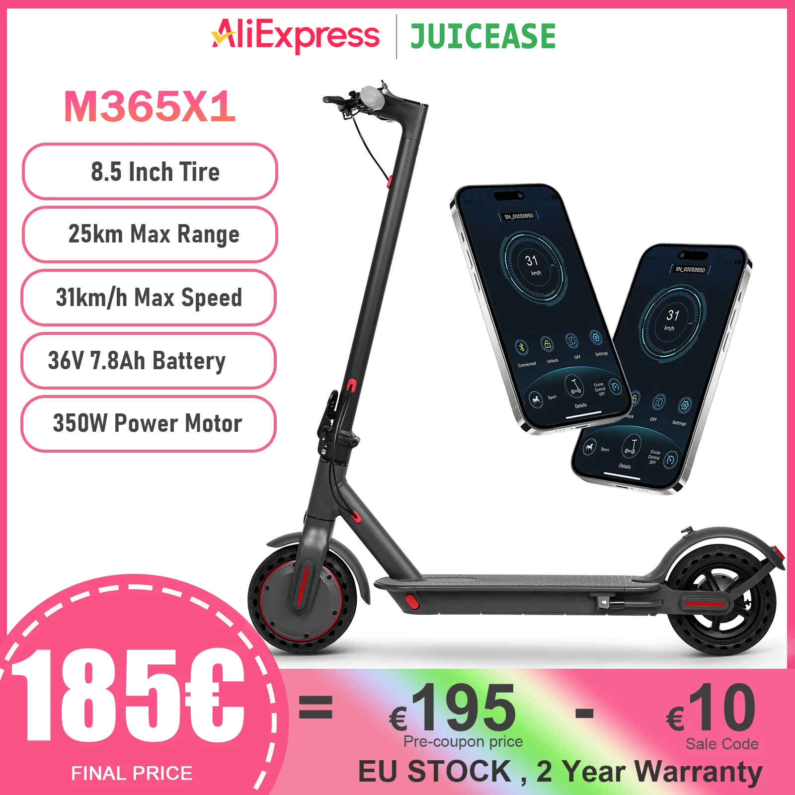2025 Nuovo JUICEASE M365X1 Scooter Elettrico 350W Motore 36V 7.8Ah Batteria 25KM Gamma 8.5Inch31KM/H Pieghevole Smart Adult EScooter