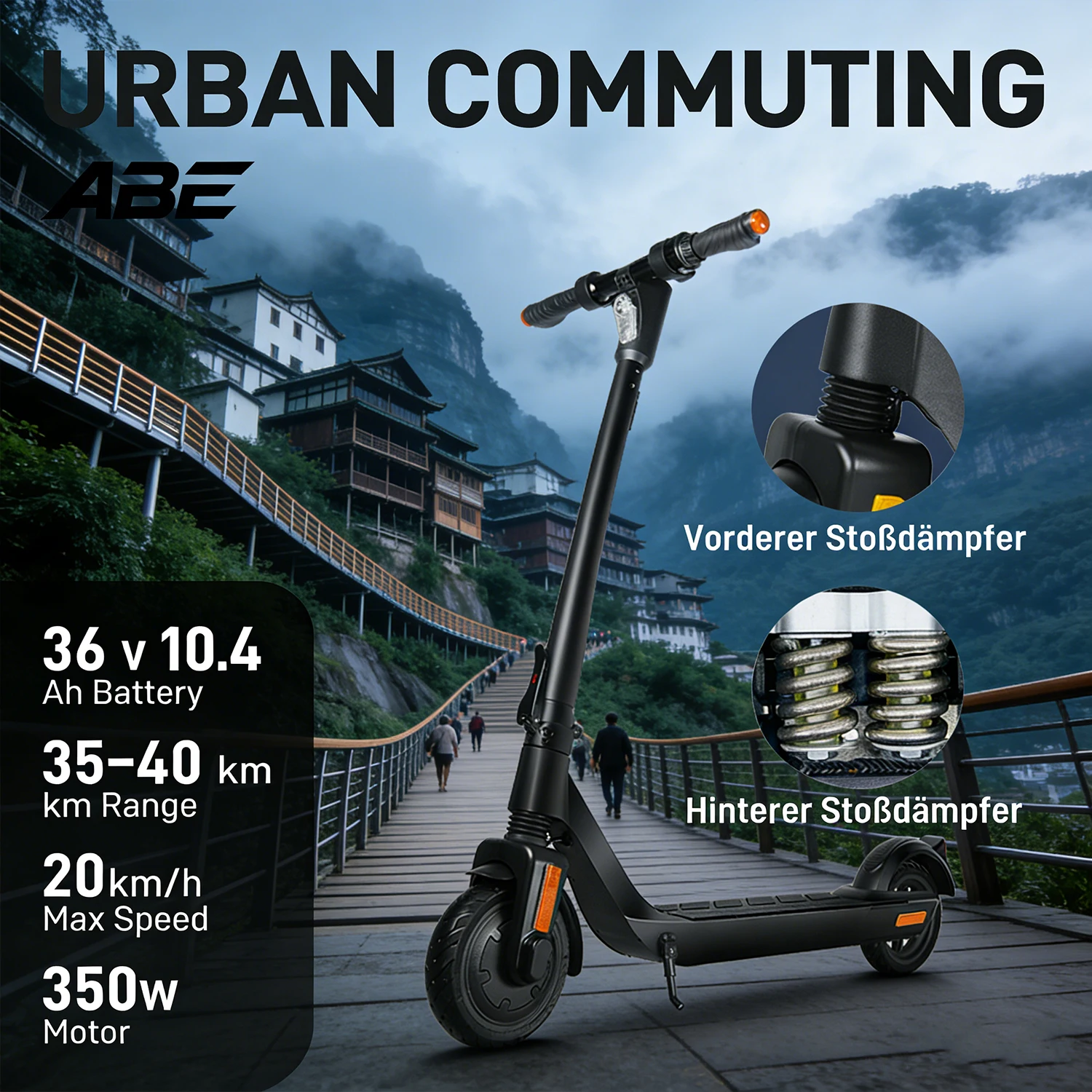 Monopattino Elettrico Urbano per Adulti con Omologazione ABE, Pneumatici da 8.5'', Motore da 350W, Batteria da 10.4Ah, Autonomia 35-40KM, Doppi Ammortizzatori