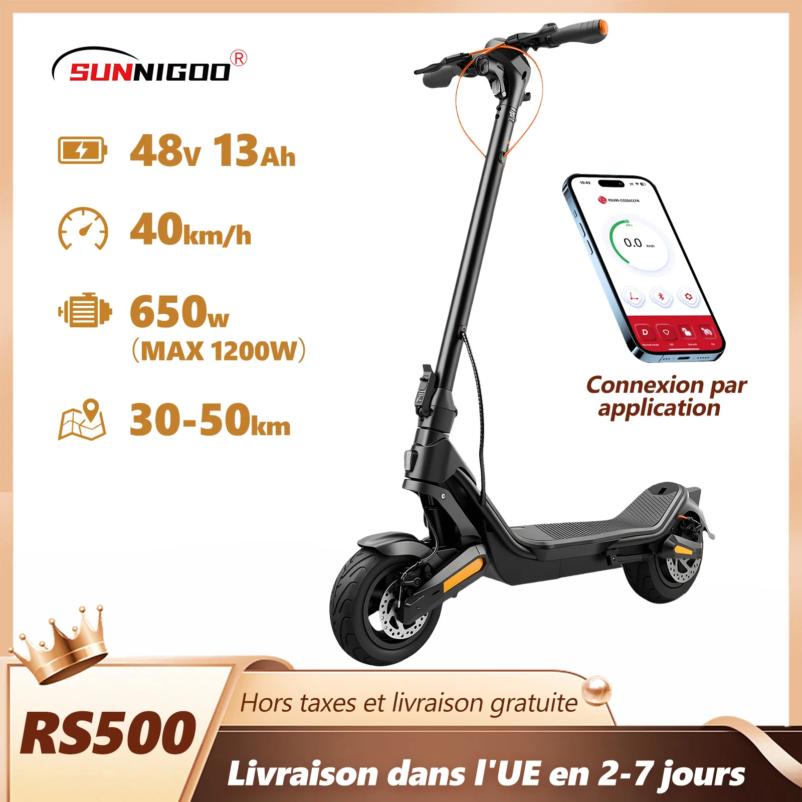 Monopattino Elettrico RS500 48V 13Ah 650W 40KM/H Autonomia 30-50KM Controllo APP Doppi Freni Pneumatici 9.5" Impermeabile IP56 Pieghevole
