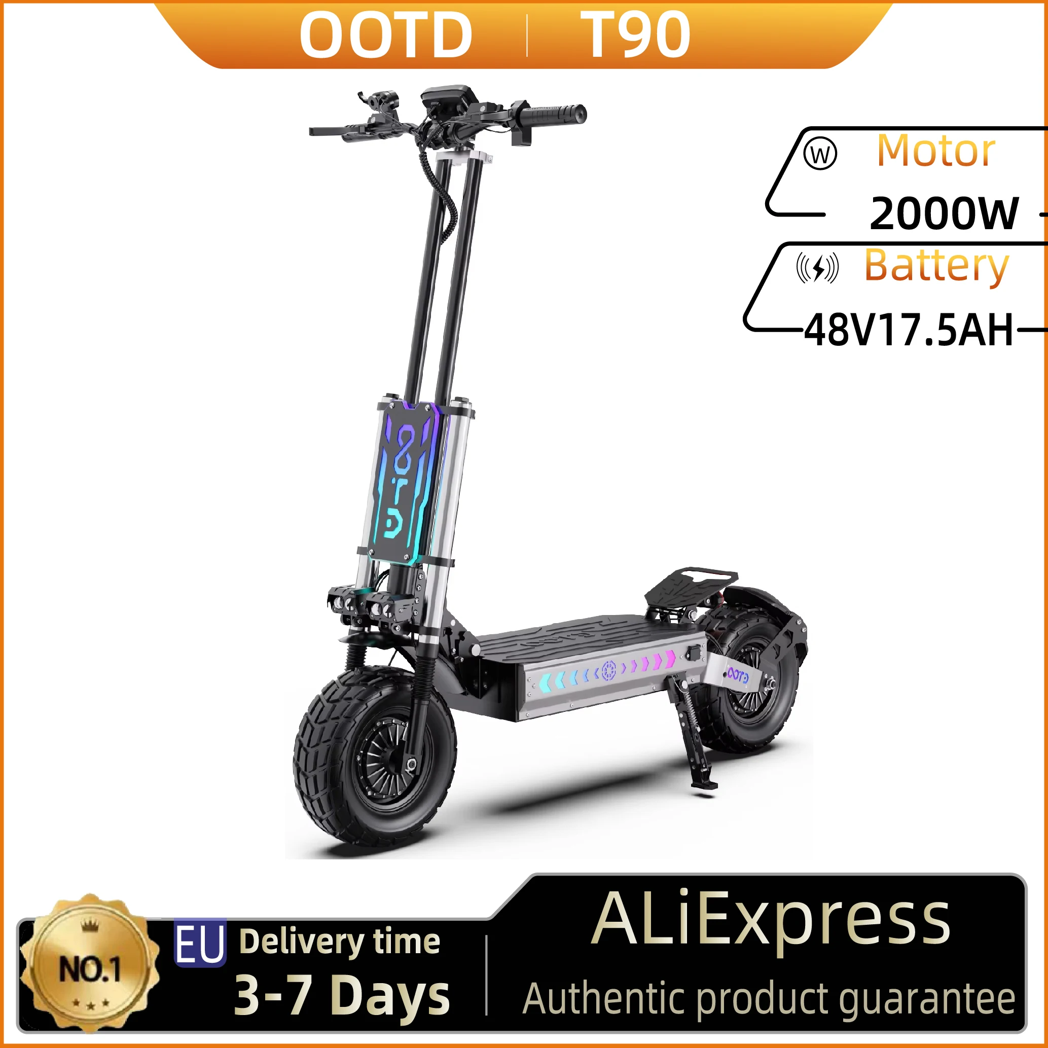 Monopattino Elettrico OOTD T90 per Adulti, 2*2100W Doppio Motore, Pieghevole, 60V 31.2AH, Pneumatici Fuoristrada da 13 Pollici, Scooter Elettrico per Avventure