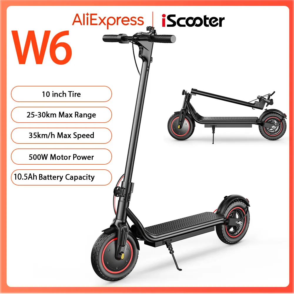 Monopattino Elettrico W6 10 Pollici 500W per Adulti, e-Scooter 36V 10.5Ah, Velocità 35 km/h, Supporto APP, Autonomia 30km, Monopattino Elettrico Urbano