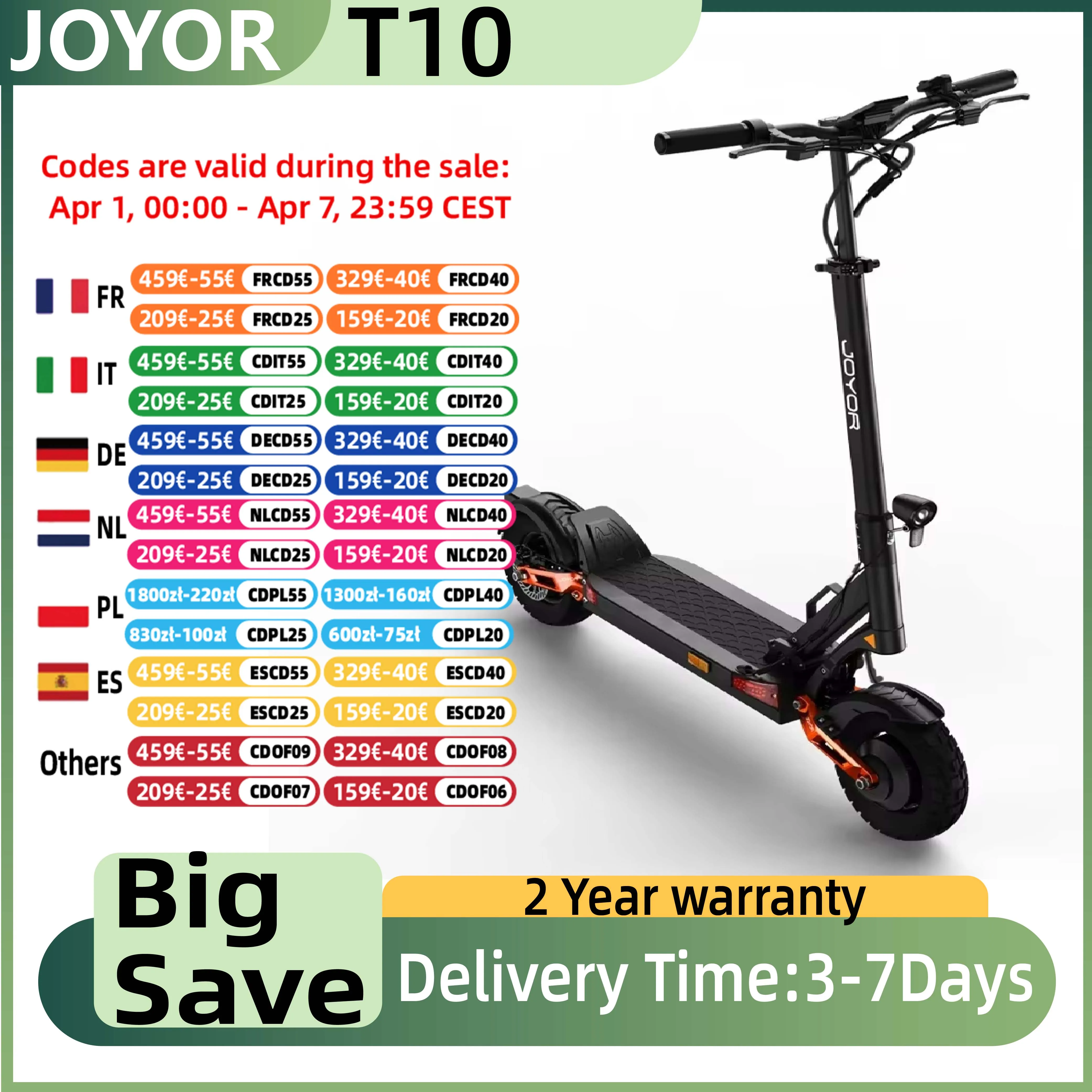Monopattino elettrico per adulti JOYOR T10, motore 1000W*2, batteria 60V18AH, pneumatici fuoristrada da 10 pollici, monopattino elettrico per tutti i terreni