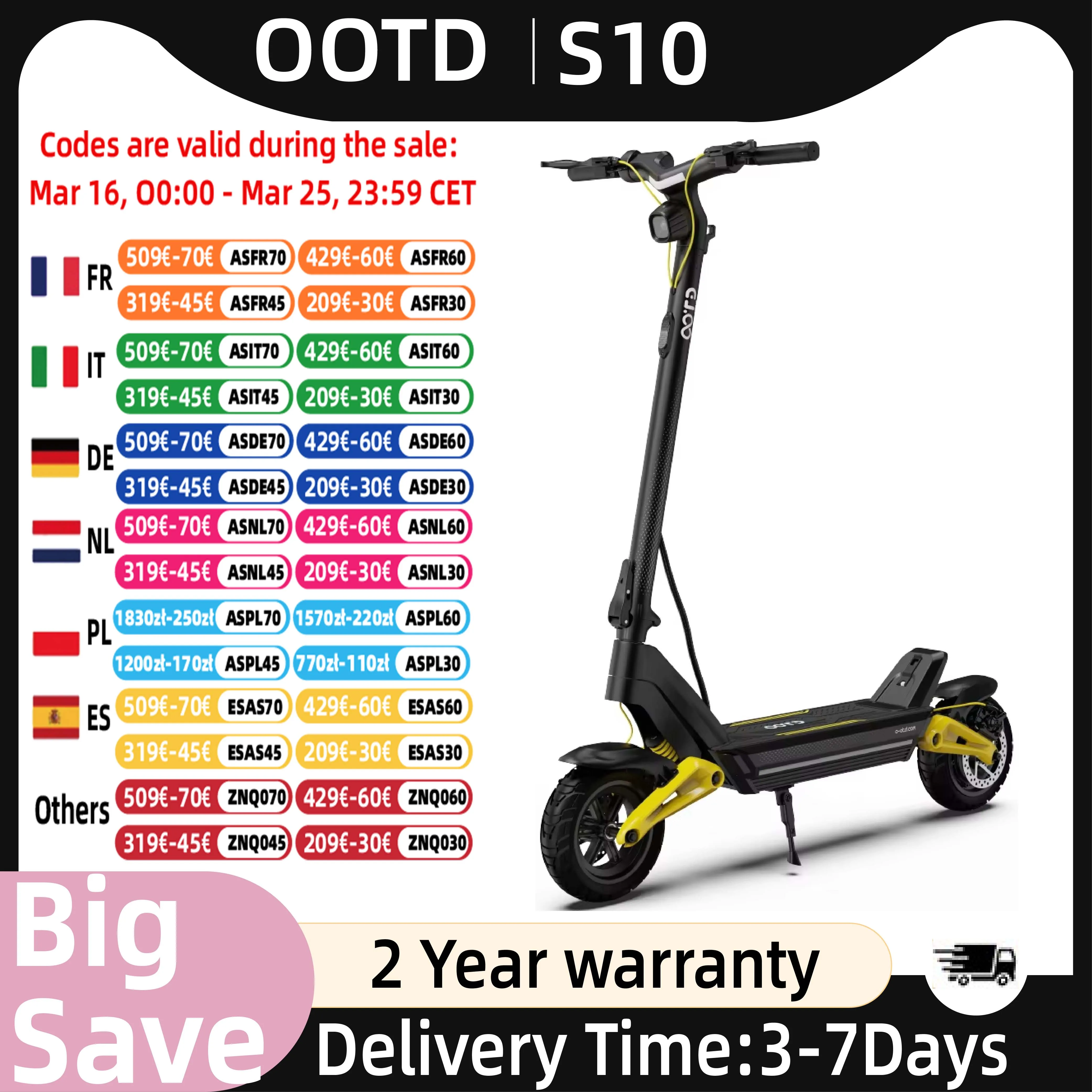 Scooter elettrico OOTD S10 1400W Motore 48V20AH Batteria City Scooter elettrico fuoristrada Scooter elettrico pieghevole da 10 pollici per adulti