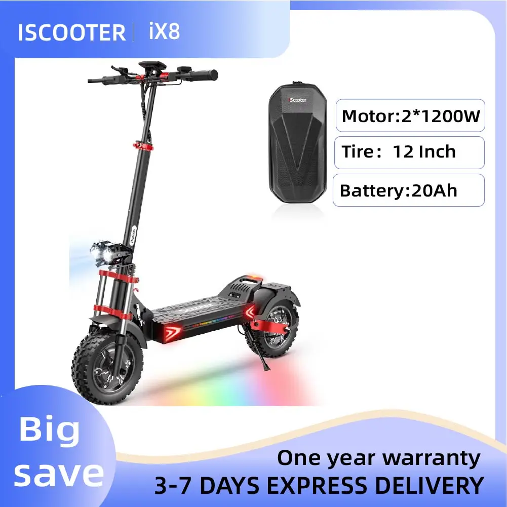 Monopattino Elettrico iScooter iX8 1200W*2 Doppio Motore 48V 20Ah Pneumatici Fuoristrada da 12 Pollici Autonomia 70km, Velocità 60km/h