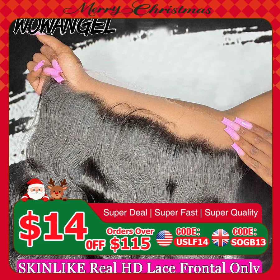 Wow Angel 13x6 Frontale Completa Solo Onda Del Corpo Pelli di Fusione invisibile HD Frontale Del Merletto Dei Capelli Umani Pre Pizzicati Parte Profonda Per La Donna