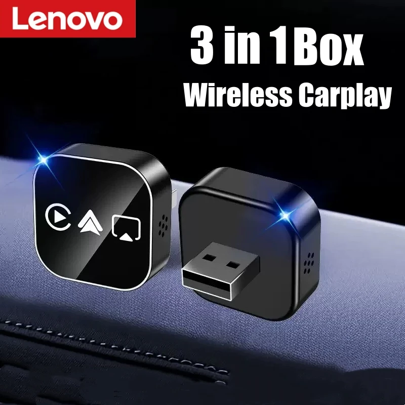 Adattatore Wireless 3 in 1 Lenovo per Carplay e Mirror Link, Conversione Istantanea da Cablato a Wireless, Plug & Play per Carplay Cablato