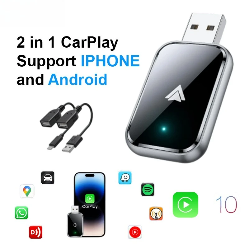 2026 Ultimo CarPlay wireless 2in1 Apapter USB per IOS CarPlay e Android Auto, converte cavo in scatola wireless, Plug & Play
