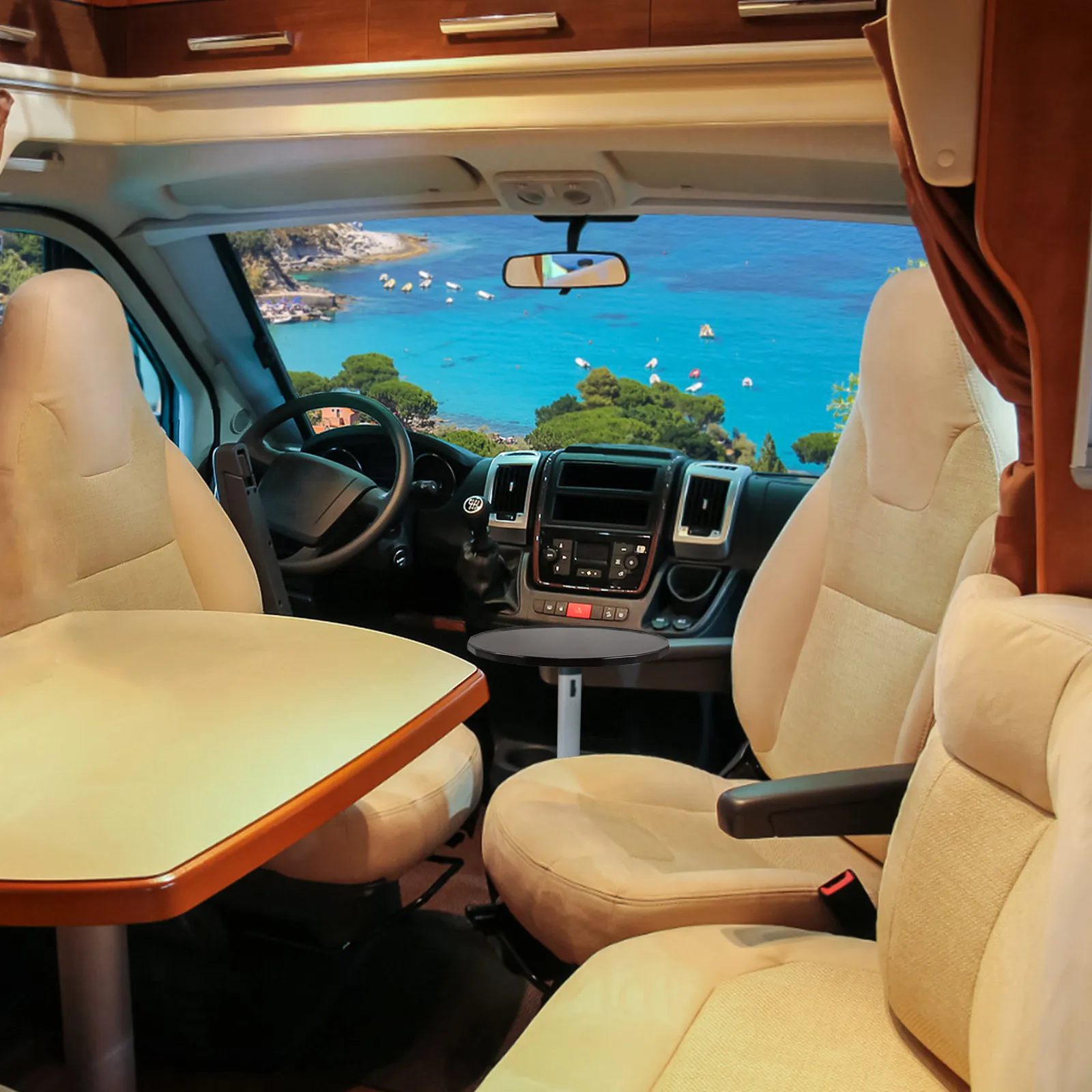 Tavolino Portatile per Auto con Portabicchieri, Vassoio Rotondo in Legno per Sedile Passeggero, Ideale per Viaggi, Campeggio e Lavoro