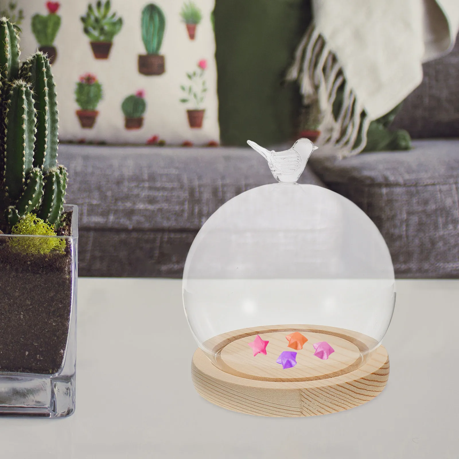 Set di 1 Campana di Vetro Decorativa con Maniglia a Forma di Uccello, Sferica, per Fiori Conservati, Fiori Secchi, Decorazione da Scrivania, Trasparente