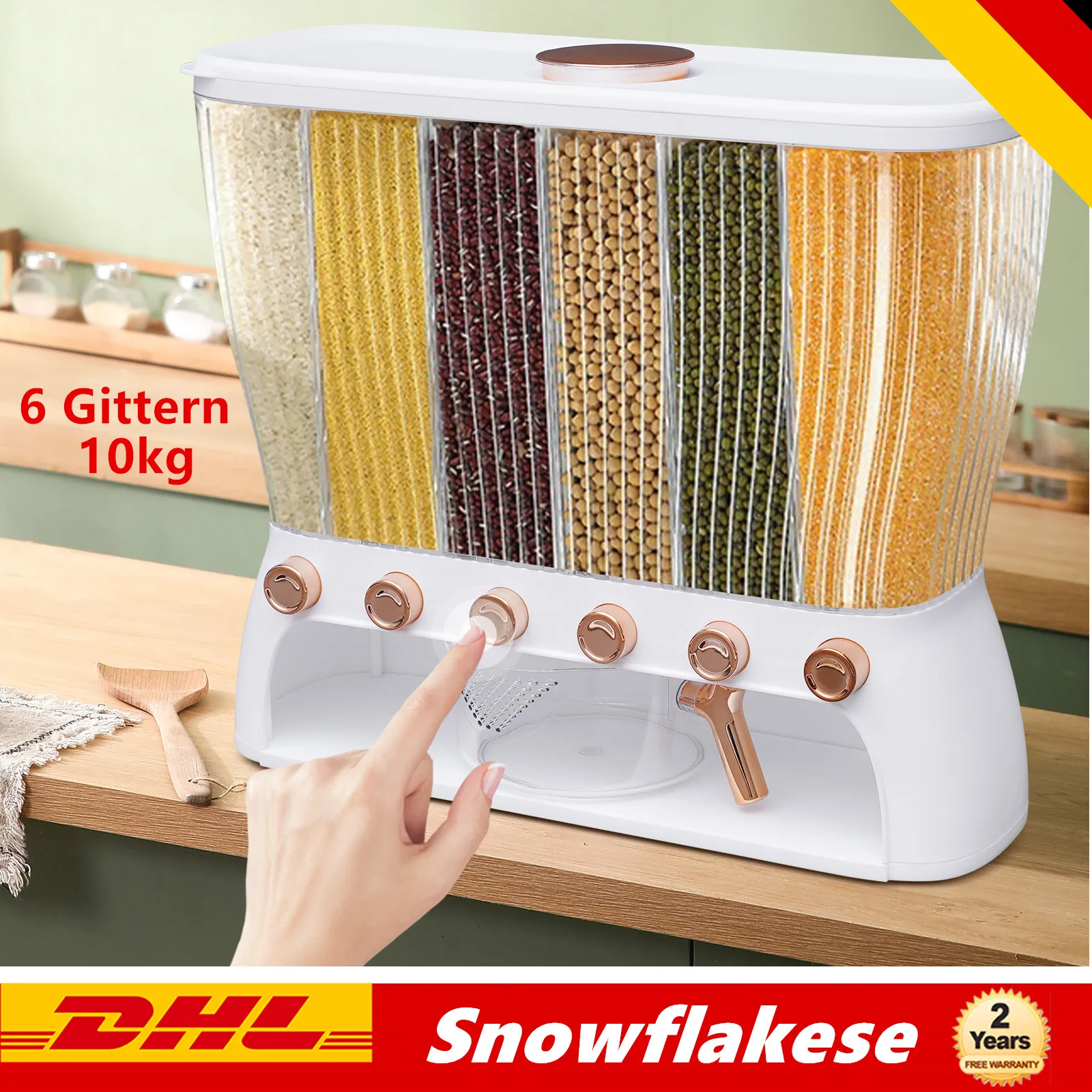 Loyalheartdy 6 Griglie Abs Dispenser di Cibo Secco Cucina Grani Ermetici Fagioli Noci Farina Contenitore di Stoccaggio Ordinato con Tramoggia di Riso