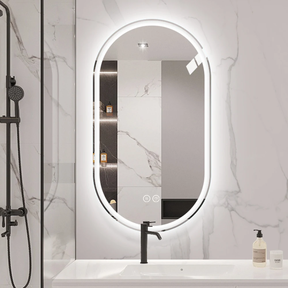Specchio intelligente da parete ovale senza cornice, specchio da bagno touch screen antiappannamento 60x90 cm o 60x100 cm