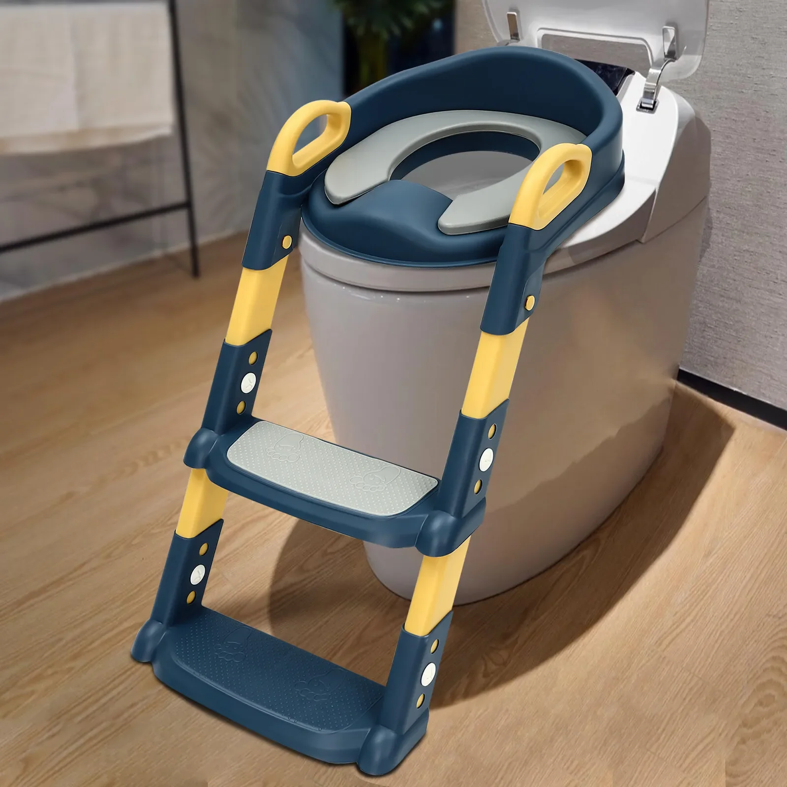 Sedile WC regolabile con scale per bambini, antiscivolo, pieghevole, confortevole, adatto per WC a forma di V/U/O di 2-7 anni