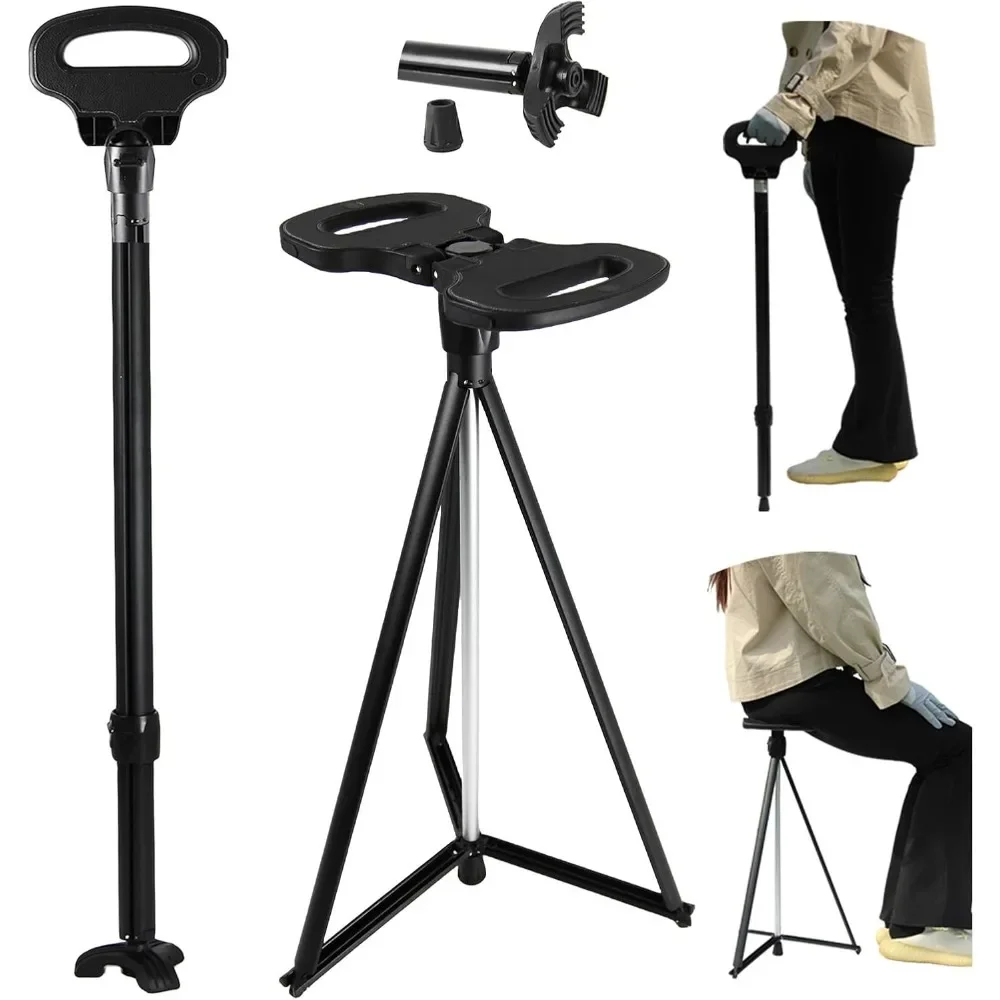 Bastone da Passeggio con Seduta - Pieghevole, Leggero, con Sedile, Robusto, per Uomini e Donne, con Borsa da Viaggio, per Anziani