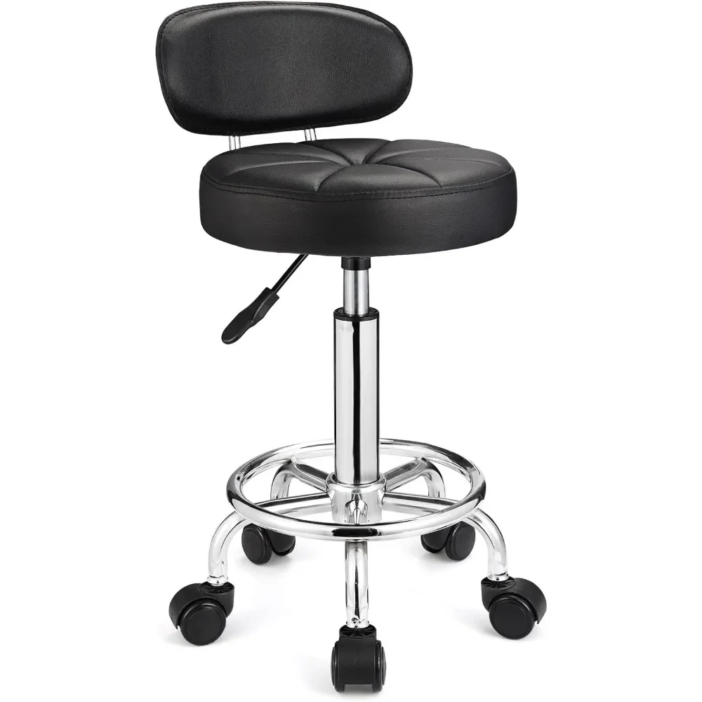 Sgabello con Ruote Regolabile in Altezza, Sedia da Spa con Schienale, Nero