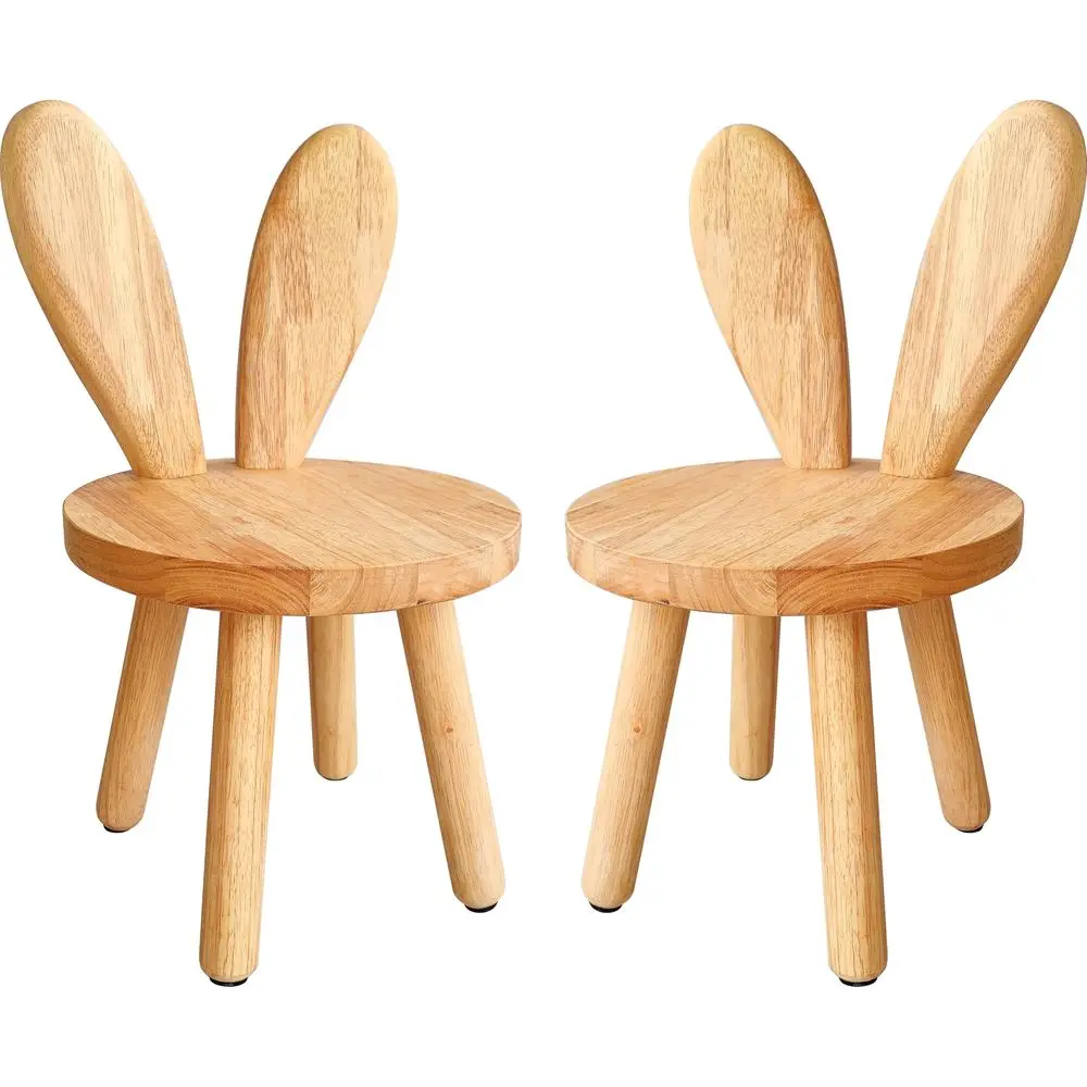 Set di 2 Sgabelli in Legno Massello, con Schienale a Orecchie di Coniglio, Sedia Piccola, Arredamento Rotondo in Legno per Bambini, per Mangiare, Leggere