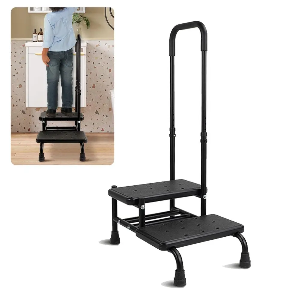 Sgabello con Maniglia, Ausilio per l'Ingresso per Anziani e Disabili, 5 Livelli di Altezza Regolabile, 2 Gradini, Capacità di Carico fino a 136 kg, S