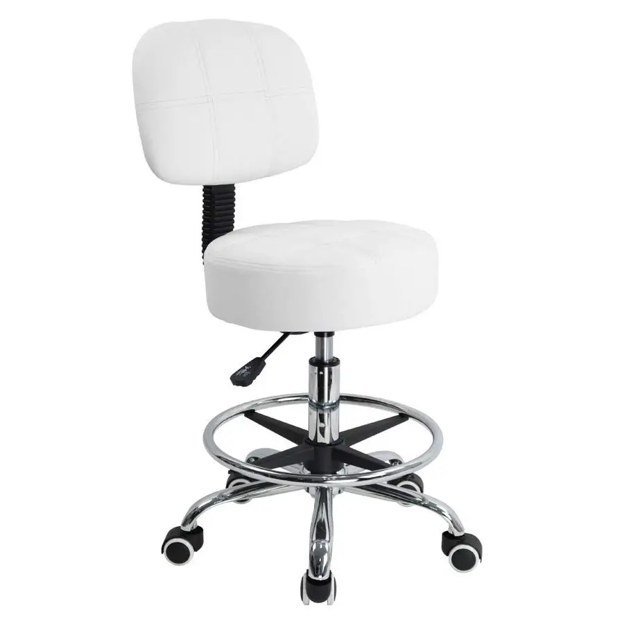Sgabello Girevole Rotondo con Poggiapiedi Regolabile, Altezza Regolabile, con Schienale in Pelle PU Bianca