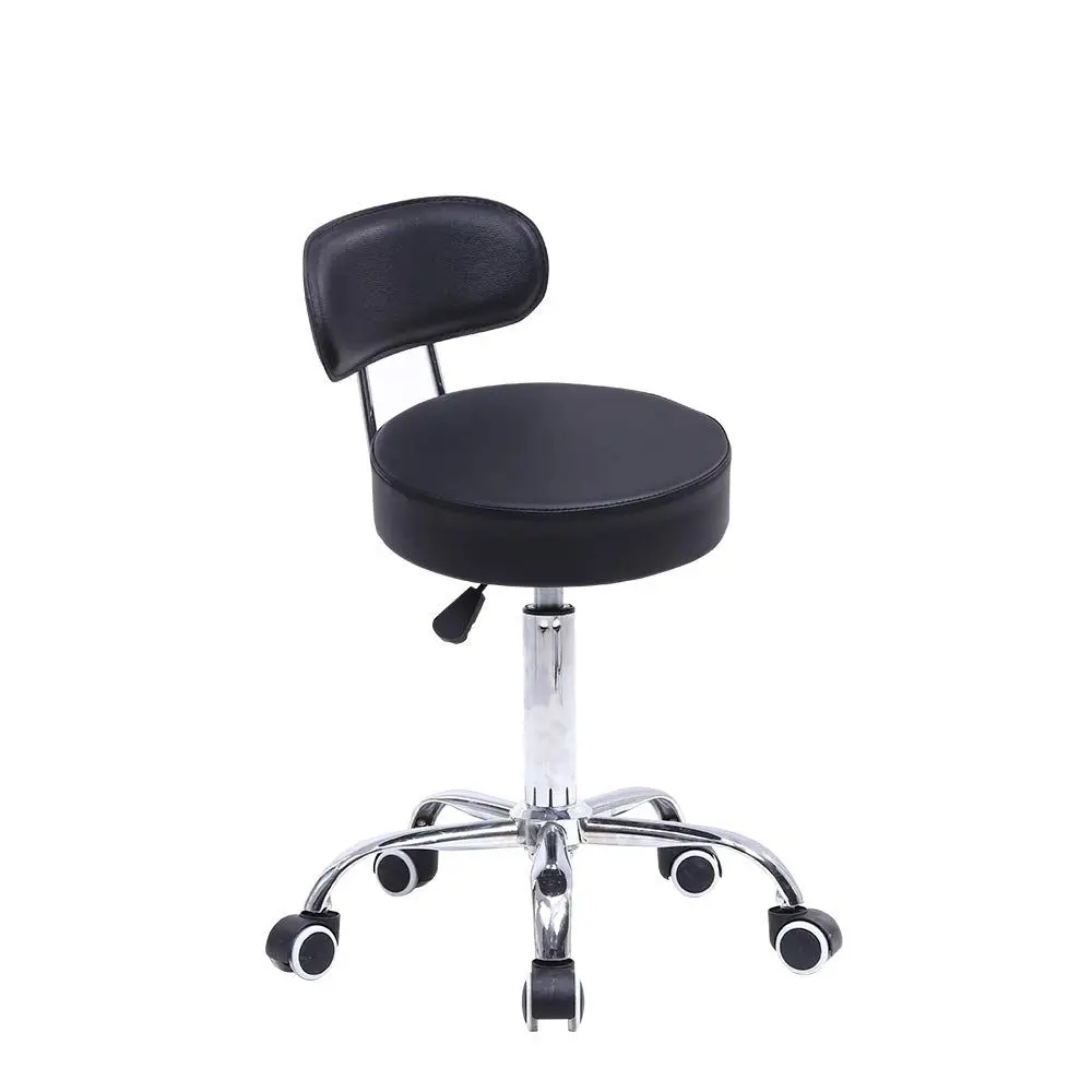 Sgabello con ruote Sedia da lavoro con schienale Regolabile in altezza Sgabello da salone con ruote in pelle PU Nero