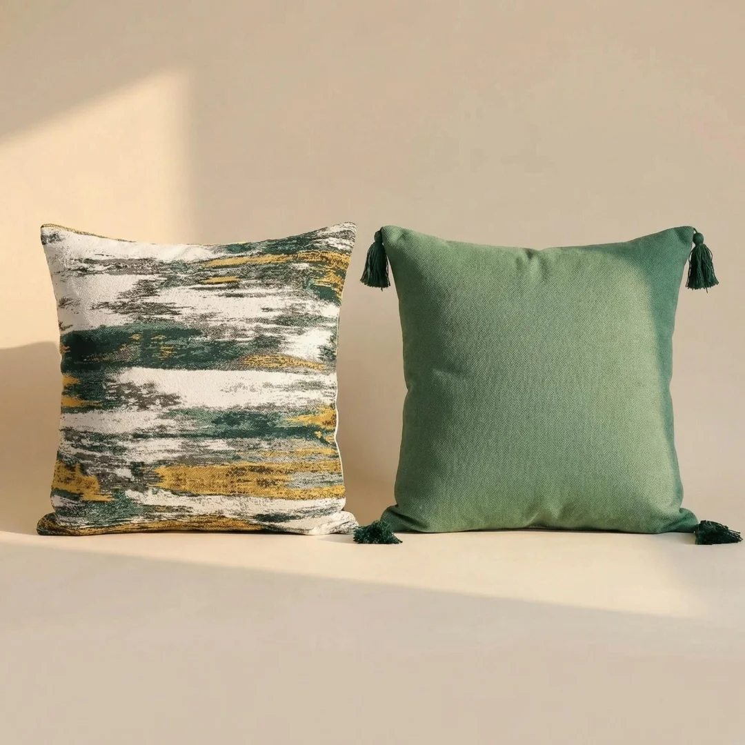 Cuscino decorativo in cotone e lino jacquard astratto tinto in filo con texture nordica, con imbottitura interna.