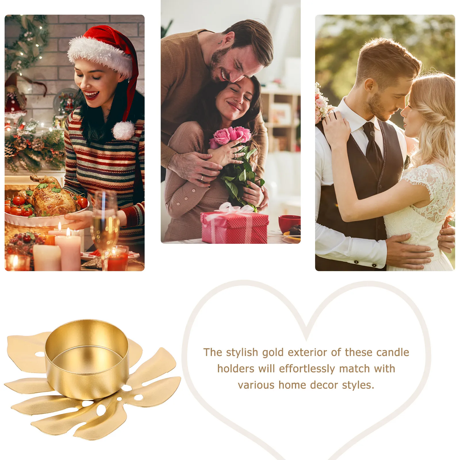 10 Pezzi Portacandele Natalizi in Metallo per Candele a Stelo, Decorazione per Feste e Vacanze, Base in Ferro