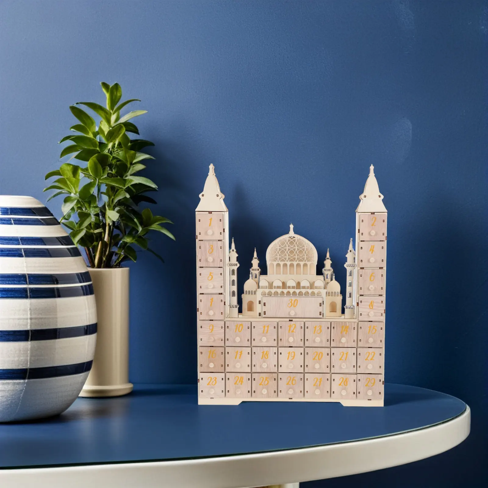 Calendario Conto alla Rovescia in Legno per l'Eid, 30 Giorni di Ramadan, Decorazione da Tavolo per Celebrazioni Islamiche