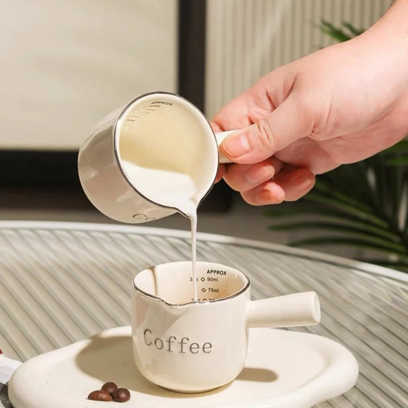 Tazza Misuratrice in Ceramica per Espresso con Scala, Tazza per Estrazione, Tazza per Latte, Brocca per Latte con Manico, Miscelatore per Latte, Tazze con Scala di Misurazione