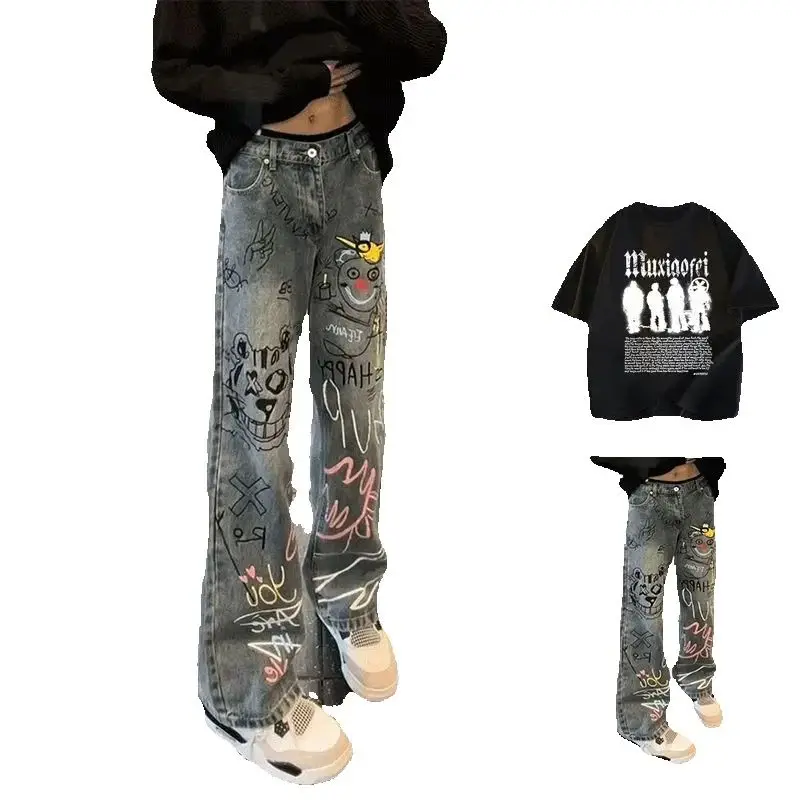 Jeans Graffiti alla moda estiva abbinati a abbigliamento da uomo a maniche corte S Set completo di abiti casual larghi e versatili per uomo