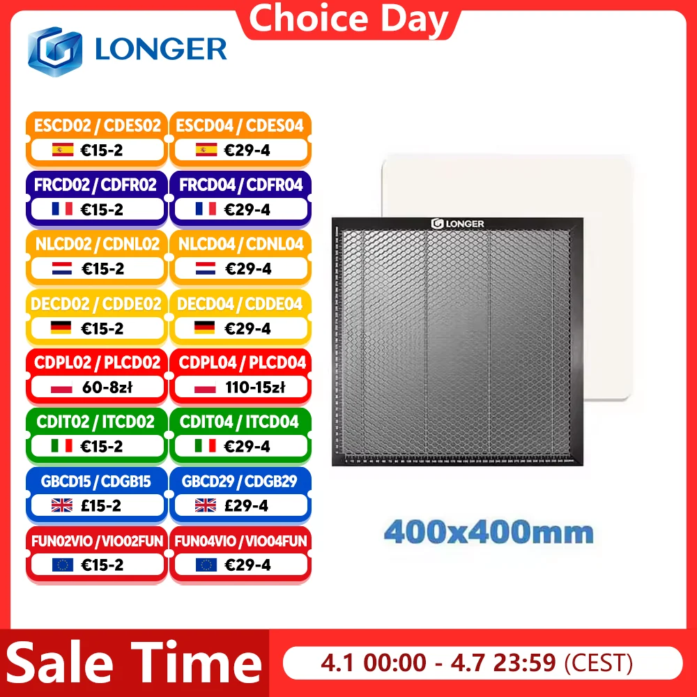 LONGER 440*440*22mm Incisore Laser Pannello a nido d'ape Tavolo da lavoro Pannello in acciaio interamente in metallo Piattaforma per incisore laser Incisore
