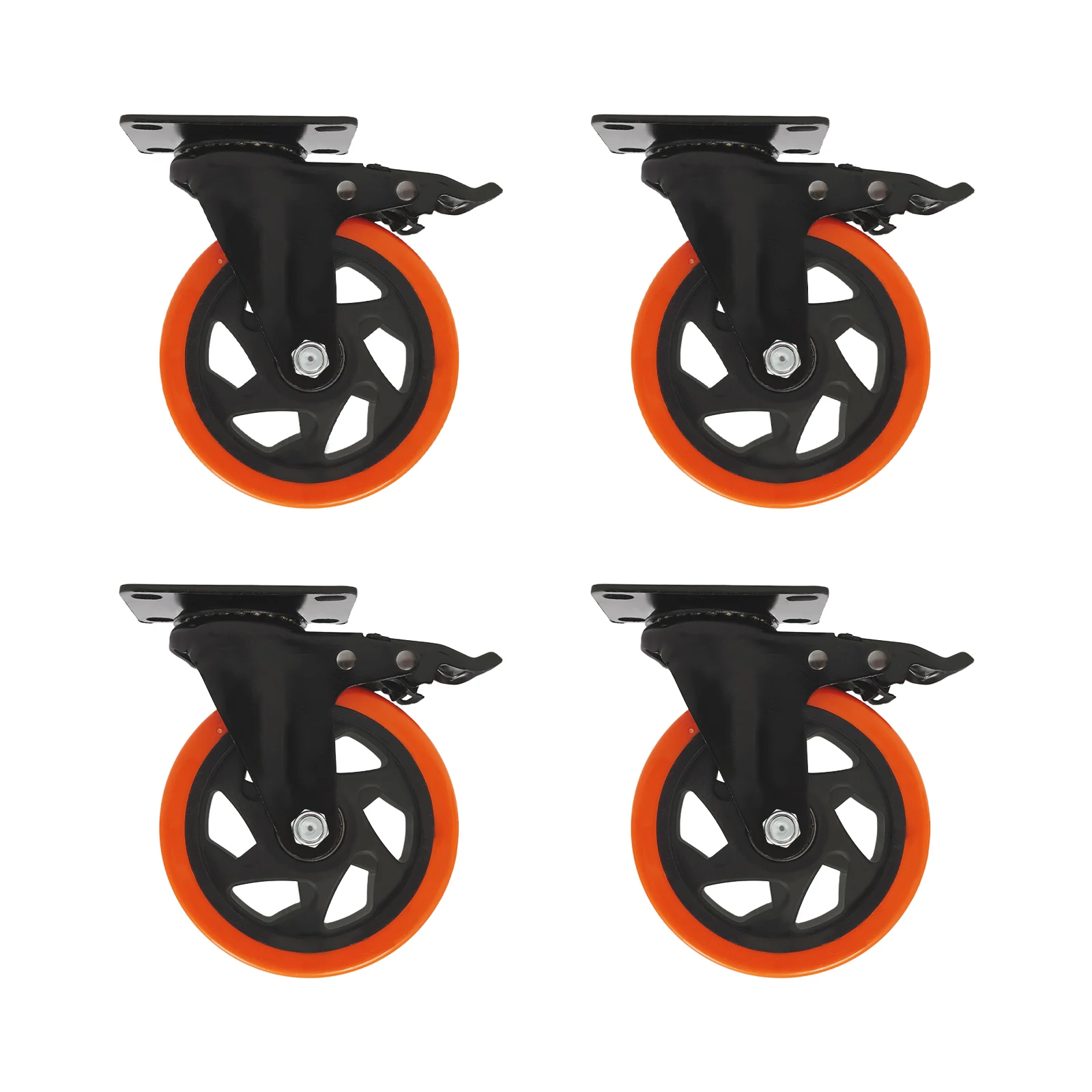 Set di rotelle per carichi pesanti 4 pezzi Capacità di carico di 100 kg ciascuno, ruote in PU con freno per carrello Carrello Banco da lavoro Uso industriale