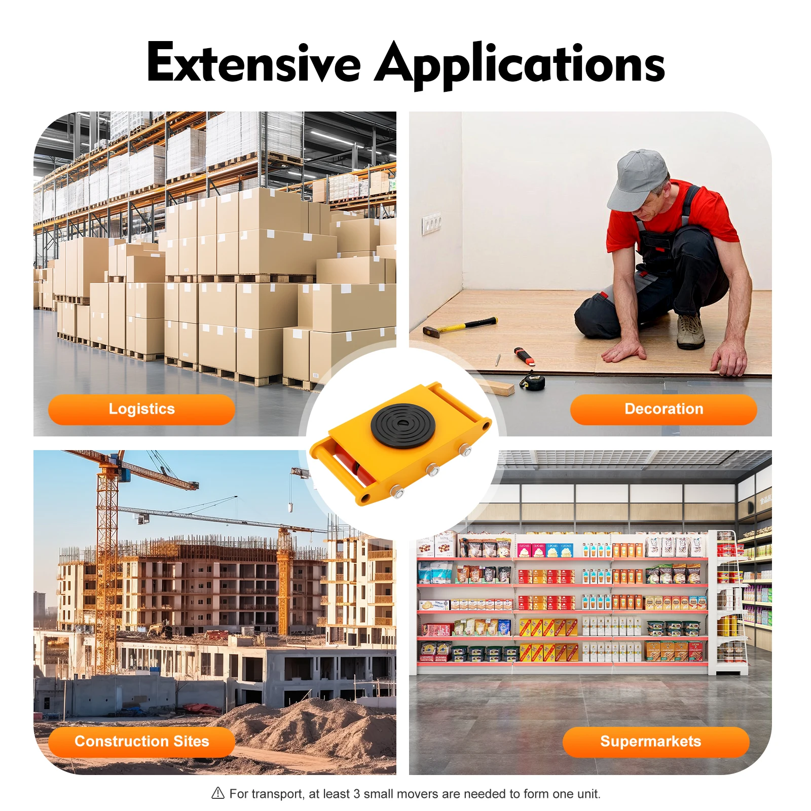 Hohe Tragfähigkeit 8 Tonnen Gelbe Meccanische Handwagen Transportrolle Mit 360 ° Drehplatte Großtrasportatore Mit 6 PU-Rädern