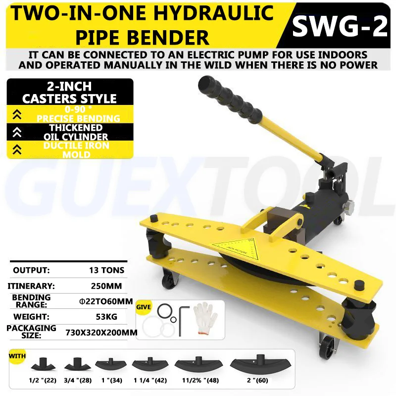 SWG-2 piegatrice idraulica manuale, piegatrice di formazione monouso, con stampi in ghisa, per tubi zincati / tubi in ferro / tubi in acciaio senza saldatura / tubi a gas, utilizzati nell'installazione di condotte, cos