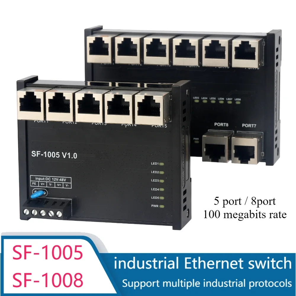 Switch Ethernet industriale a 5 porte, 8 porte, splitter di rete 100M, shunt, SF-1005, SF-1008 Supporta più protocolli industriali