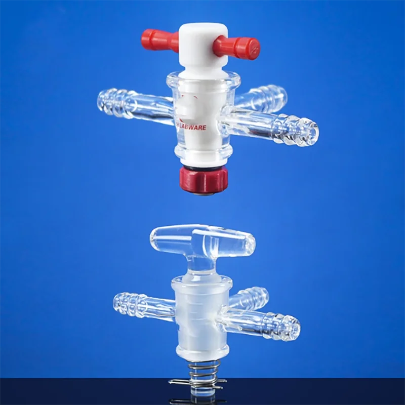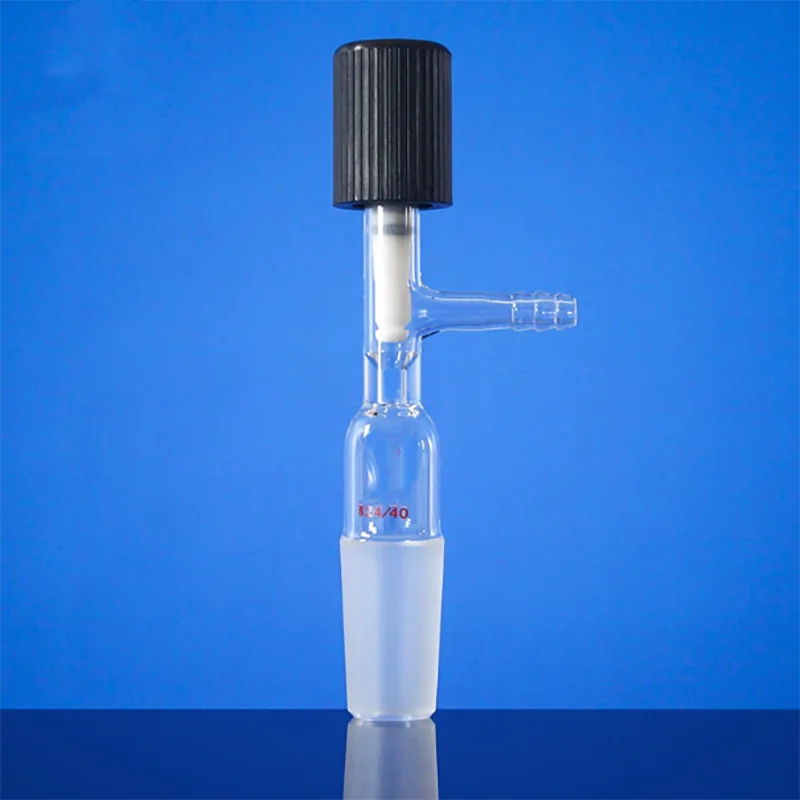 Vetro con tubo ricevente per vuoto a pistone Tubo ricevente per vuoto da 105 gradi Tubo di distillazione per tubo di pompaggio dell'aria a pistone tetrafluoro