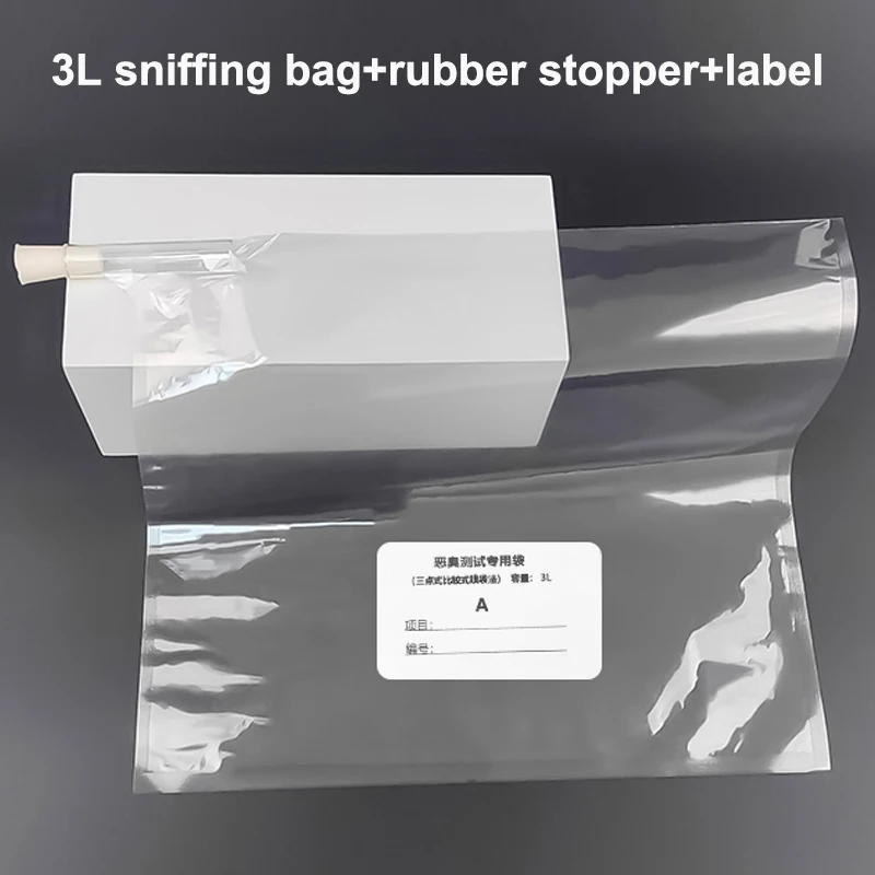 sacchetto per campioni di gas sacchetto Olfactory da 3 litri, metodo di odore per confronto a tre punti, uso del sacchetto profumato per test di odori sperimentale, con tappo, 5 pezzi