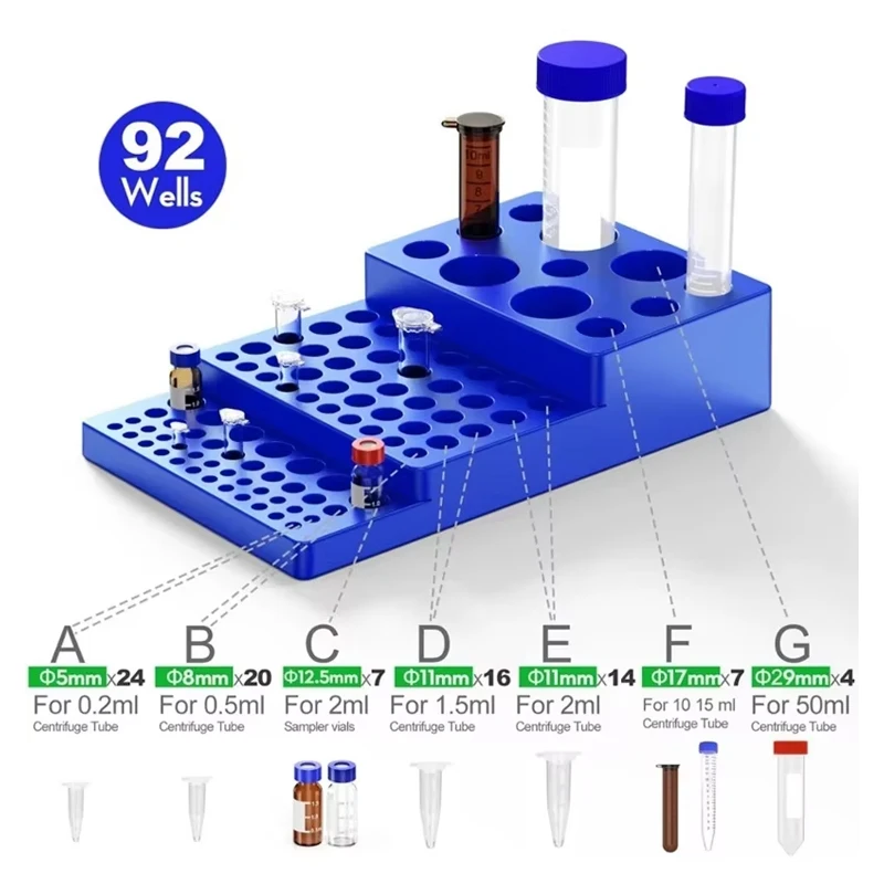 Portaprovette per centrifuga, supporto trapezoidale multifunzionale per provetta da 0,2 ml-50 ml, supporto a 92 fori per provette da laboratorio, scientifico biomato