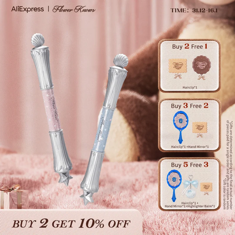 Flower Knows Penna per baco da seta orizzontale a doppia testa Contorno liscio Ritenzione del colore Schiarente Perlescente Lustro Shell Pearl