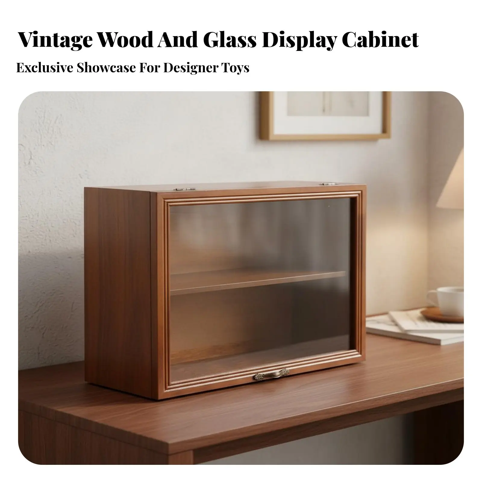 Vetrina per Statuette in Legno Robusto, Espositore per Statuette con Porta in Vetro, Armadietto Contenitore Resistente agli Scheggiature, Scatola Contenitore con Porta in Vetro